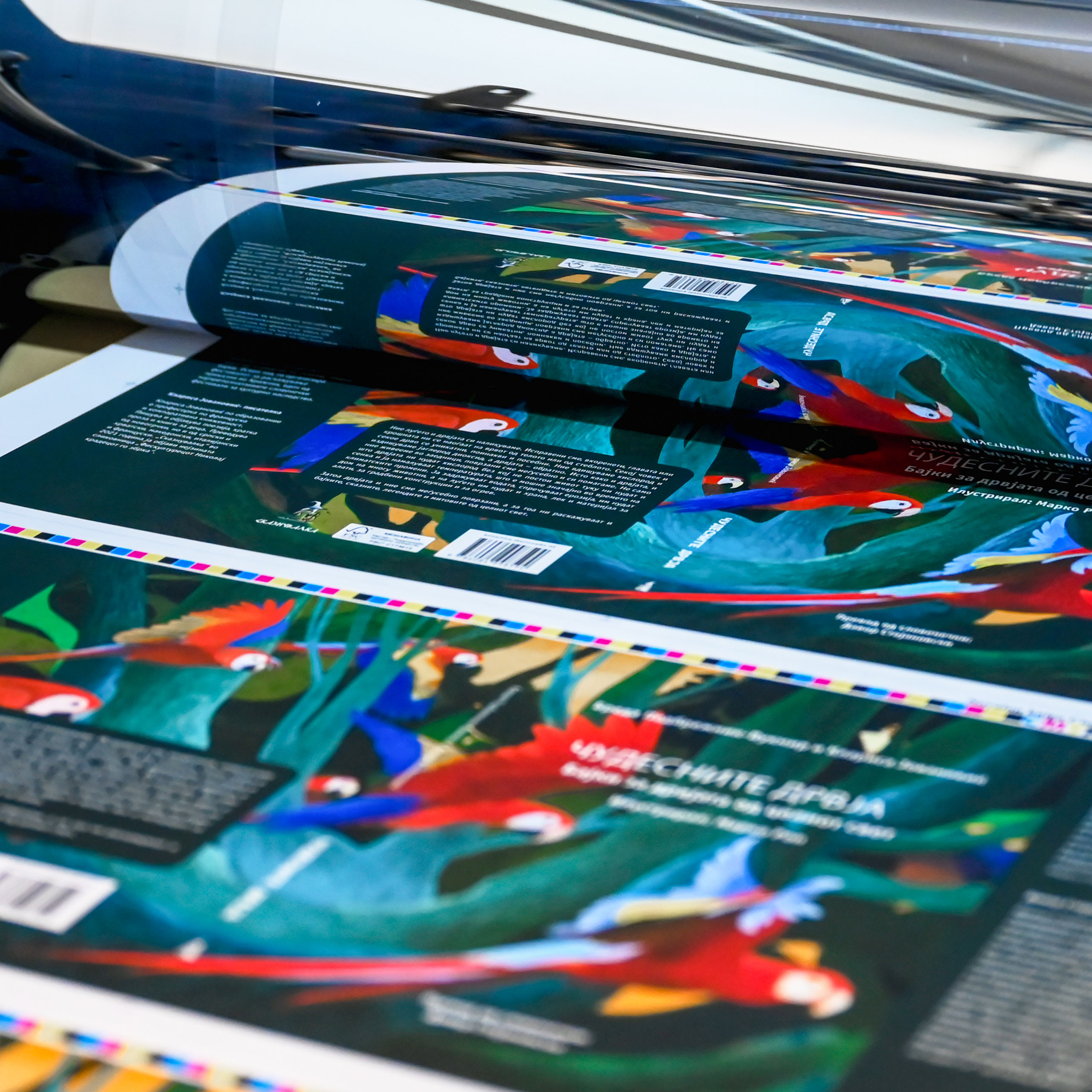 Офсет технологијата овозможува печатење во големи количини со совршена репродукција на бои и детали.